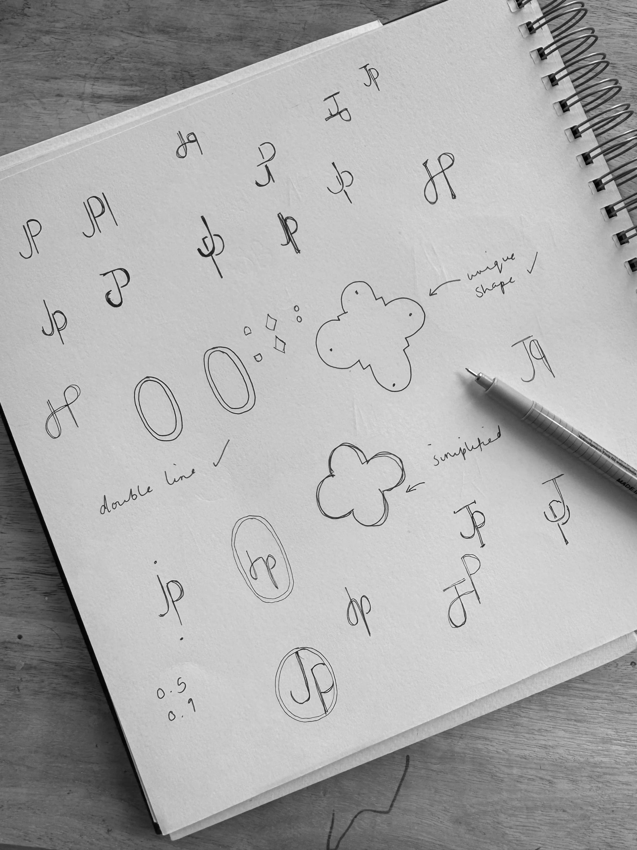 Initial sketch ideas for the monogram